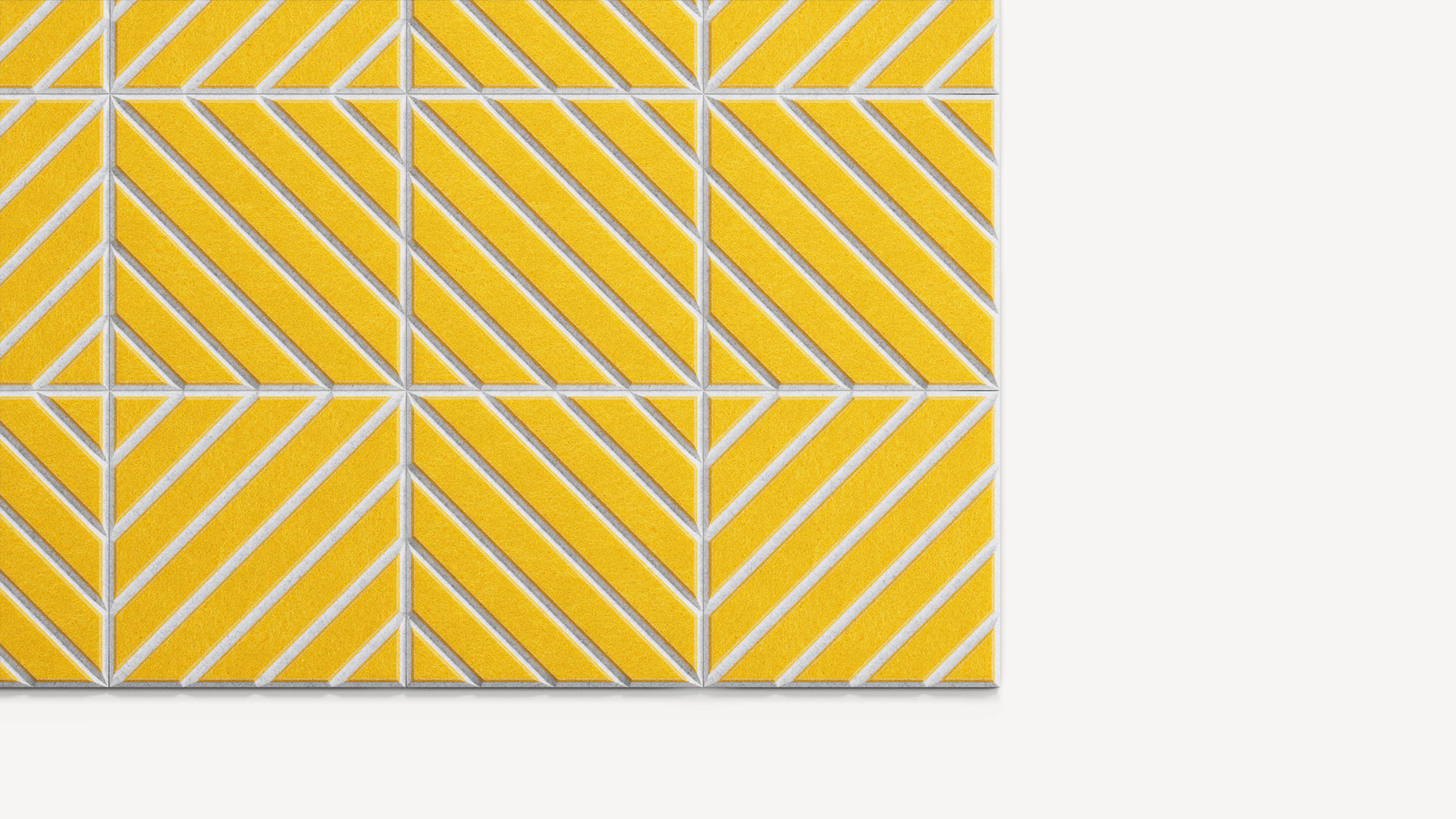 Methodical pathways merge together in Maze. A deceptively simple diagonal line pattern — with a single color or two-tone contrast — creates a complex, captivating network. Eye-catching and hypnotic, felt tiles hedge sound, so noise can't find its way out.