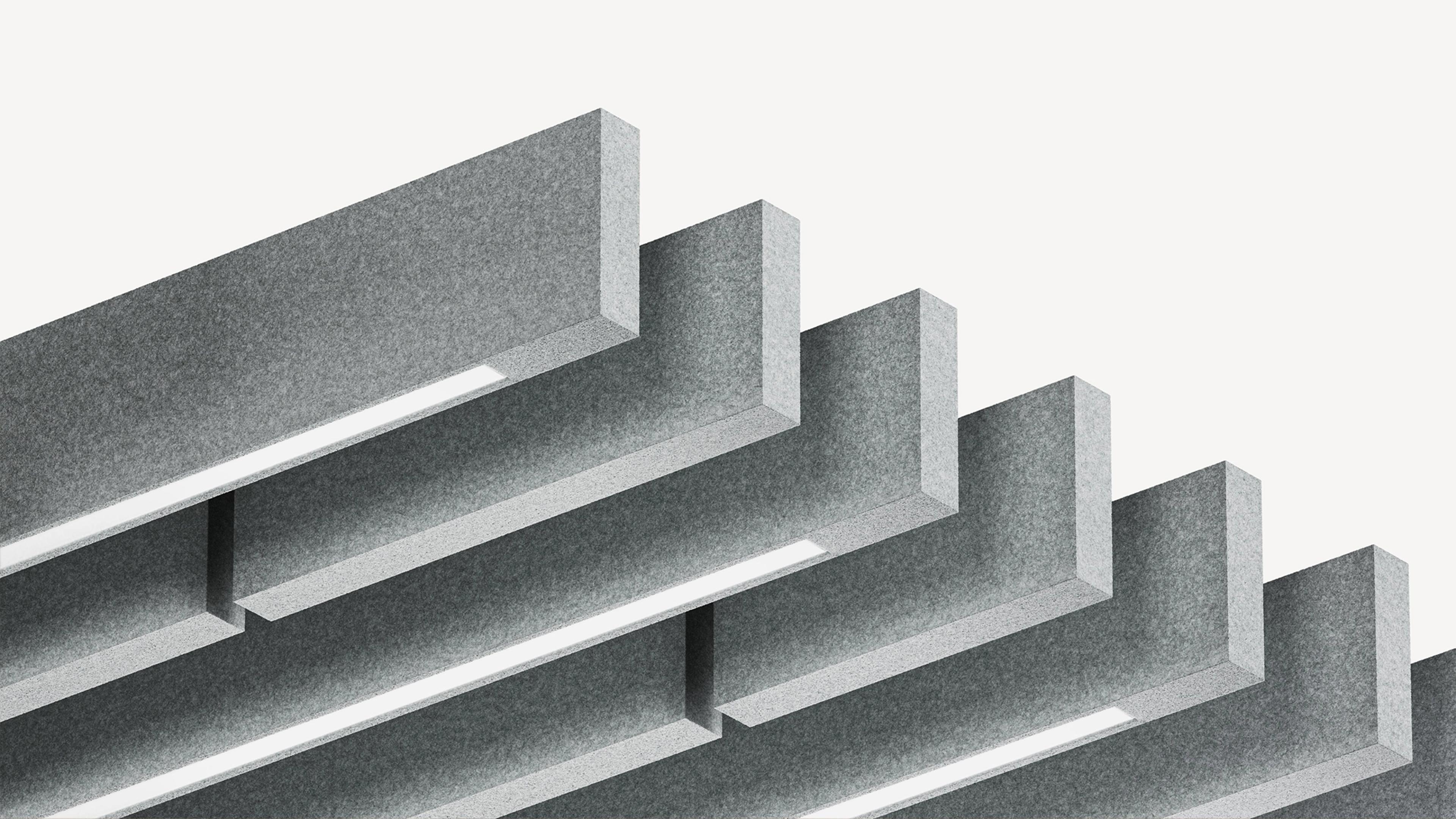 This range displays information for an array of Slab baffles suspended by cables, evenly distributed in four rows of four units. Slab LED typically represents only a handful of baffles within an array, Slab Baffle NRC offers a more accurate overview of the average space. Please check the cutsheet for more detailed information.